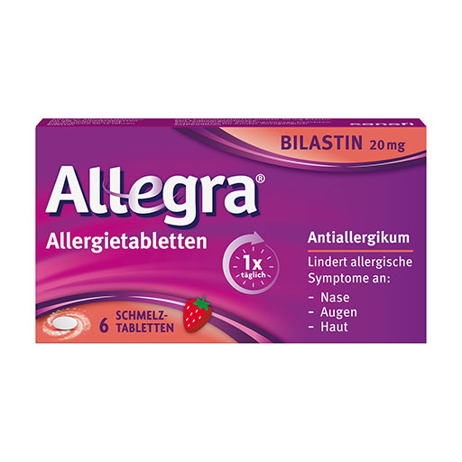 IDEALE EINNAHME – AUCH UNTERWEGS: Allegra® Schmelztabletten mit Erdbeergeschmack zergehen ohne Wasser auf der Zunge und kontrollieren Allergiesymptome wirksam für 24 h – mit nur 1 Tablette am Tag. Die Einnahme erfolgt idealerweise eine Stunde vor oder zwei Stunden nach dem Frühstück.
