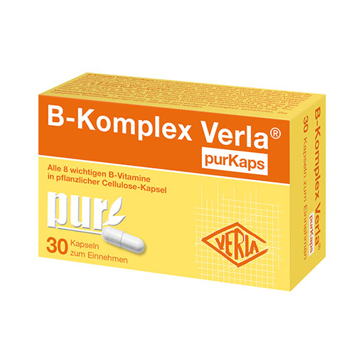 B-Komplex Verla® purKaps bietet alle 8 wichtigen B-Vitamine in hoher Konzentration in 1 Kapsel: