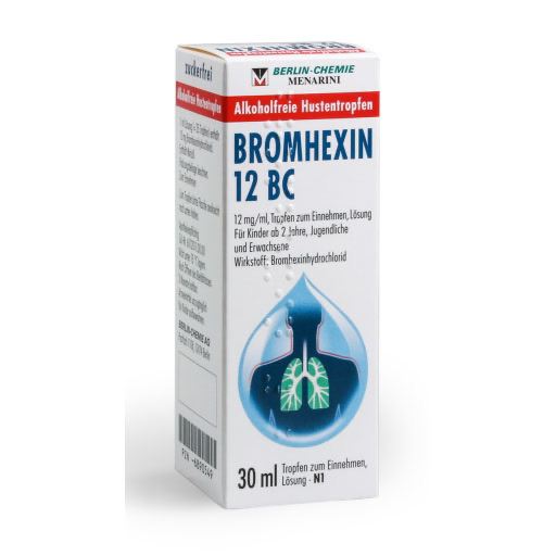 Sie sind geeignet für Kinder ab 2 Jahren und Erwachsene. Bei Kindern unter 2 Jahren darf Bromhexin 12 BC wegen des Gehalts an Minzöl nicht angewendet werden. Bromhexin ist die Kurzform für den Wirkstoff Bromhexinhydrochlorid. 12 bedeutet die Wirkstärke in Milligramm pro Milliliter. BC steht für BERLIN-CHEMIE.