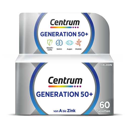 Der Energiebedarf im Alter sinkt, aber die Zufuhr der erforderlichen Menge an Mikronährstoffen sollte weiterhin gleichermaßen gewährleistet sein. Denn diese sind für den Erhalt des Wohlbefindens und der Leistungsfähigkeit besonders wichtig. Vitamin B12 beispielsweise trägt zu einem normalen Energiestoffwechsel und Vitamin C zu einer normalen Funktion des Immunsystems bei. Die Mikronährstoff-Formel Centrum „Generation 50+“ ist speziell an die Nährstoffbedürfnisse von Best Agern angepasst. Somit ergänzt Centrum „Generation 50+“ die Ernährung von Best Agern sinnvoll und bildet eine gesunde Basis für ihr Wohlbefinden.