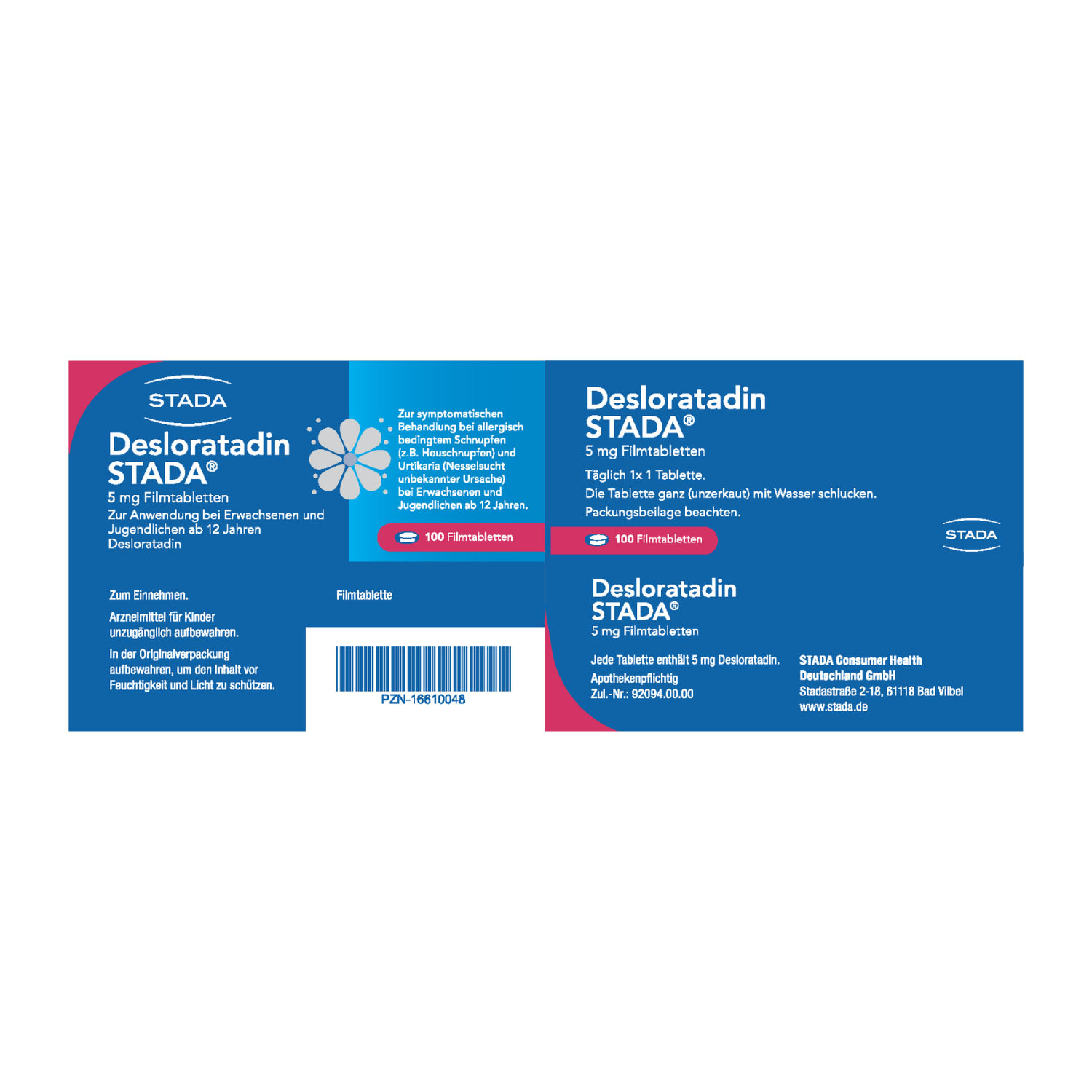 Anwendungsgebiete: Desloratadin STADA® bessert die Symptome bei allergischer Rhinitis (durch eine Allergie hervorgerufene Entzündung der Nasengänge, beispielsweise Heuschnupfen oder Hausstaubmilben-Allergie). Diese Symptome beinhalten Niesen, laufende oder juckende Nase, Juckreiz am Gaumen und juckende, gerötete oder tränende Augen. Es wird ebenfalls angewendet zur Besserung der Symptome bei Urtikaria (ein durch eine Allergie hervorgerufener Hautzustand). Diese Symptome beinhalten Juckreiz und Quaddeln. Die Besserung dieser Symptome hält einen ganzen Tag an und hilft Ihnen, Ihre normalen Alltagsaktivitäten wieder aufzunehmen und Ihren Schlaf wiederzufinden. Wenn Sie sich nach 10 Tagen nicht besser oder gar schlechter fühlen, wenden Sie sich an Ihren Arzt.