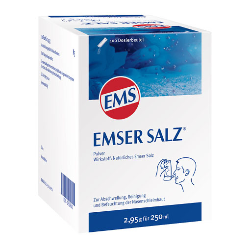 Emser Salz lässt einen akuten und chronischen Schnupfen schneller abklingen und fördert die Genesung nach Operationen an den Nasennebenhöhlen. Es ist ein Gemisch aus vielen verschiedenen Salzen, wie z.B. Natrium, Kalium, Magnesium, Calcium oder Chlorid. Diese Salzmischung hilft die Schleimhautoberfläche der Nase feucht zu halten und zähes Sekret auf zu lösen. Außerdem lässt sie die winzigen Härchen im Riechorgan schneller schlagen, so dass sie den dickflüssigen Auswurf oder schädliche Erreger rascher abtransportieren.