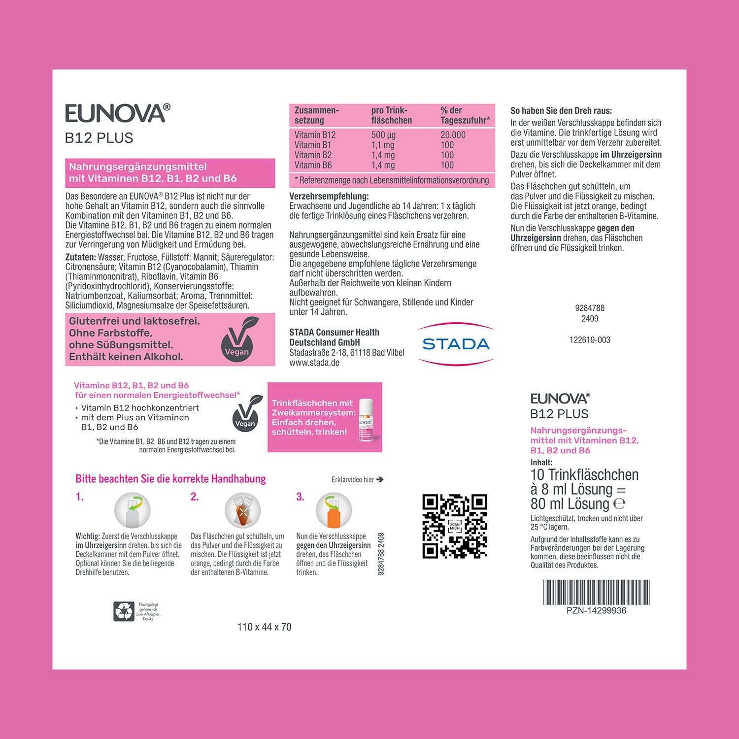 Wir empfehlen nicht mehr als ein Trinkfläschchen EUNOVA® B12 Plus am Tag zu nehmen.