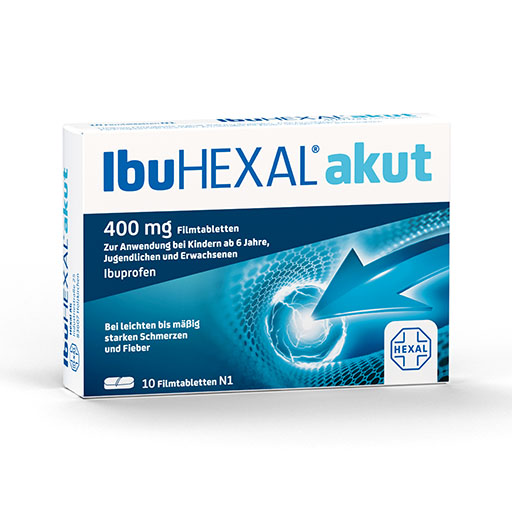 IbuHEXAL® akut 400 mg Filmtabletten mit dem bewährten Wirkstoff Ibuprofen wirkt schnell und zuverlässig bei leichten bis mäßig starken Kopfschmerzen, Zahnschmerzen und Regelschmerzen. Darüber hinaus kann das Arzneimittel auch zur Fiebersenkung eingesetzt werden.