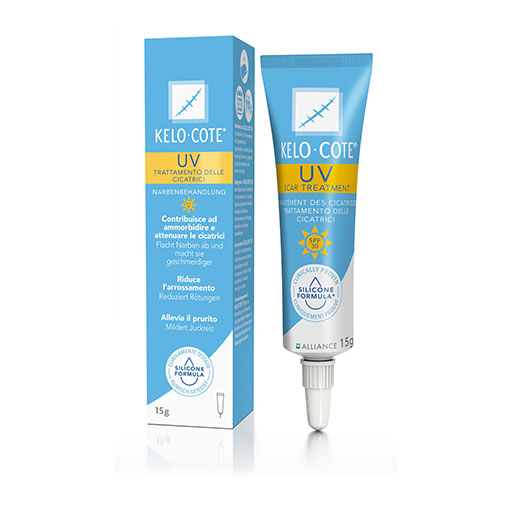Anwendungsgebiete: KELO-COTE® Narbengel UV ist für die Prävention und Behandlung frischer Narben, einschließlich hypertropher Narben und Keloiden, nach allgemeinen chirurgischen Eingriffen, nach ästhetischen Eingriffen, bei Verletzungen, Wunden und Verbrennungen bestimmt. KELO-COTE® Narbengel UV ist auch für Kinder ab drei Monaten und für die Anwendung auf empfindlicher Haut, im Gesicht und auf dem Augenlid geeignet.