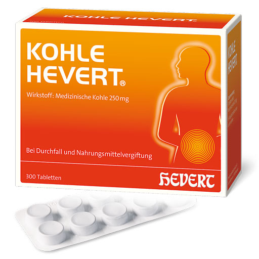 Kohle Hevert Tabletten sind vegan und behandeln akuten Durchfall und Vergiftungen durch Lebensmittel, Medikamente und Schwermetalle ohne Nebenwirkungen. Durch die Bindung der Giftstoffe an die Kohlepartikel können diese ausgeschieden werden. Die Kohletabletten unterstützen den Körper bei seiner natürlichen Abwehrreaktion. Wichtig ist, viel zu trinken, damit sich die Kohle im Darm optimal verteilen und gleichzeitig der Flüssigkeitsverlust bei Durchfall ausgeglichen werden kann.