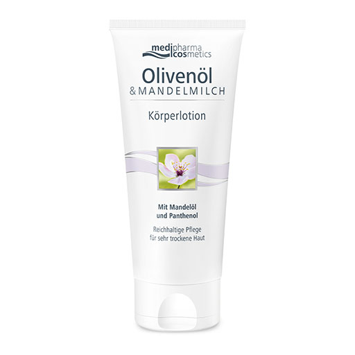 Verwöhnen Sie Ihren Körper mit der reichhaltigen Pflegekombination aus Olivenöl und hautpflegendem Mandelöl. Milchproteine, Mandelblütenextrakte und hautberuhigendes Panthenol schützen die Haut vor dem Austrocknen und pflegen sie streichelzart. Olivenöl & Mandelmilch Körperlotion eignet sich ideal zur täglichen Körperpflege bei sehr trockener, sensibler Haut. Genießen Sie die Pflege und den zart cremigen Duft.