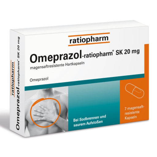 Omeprazol-ratiopharm® SK 20 mg magensaftresistente Hartkapseln Wirkstoff: Omeprazol. Anwendungsgebiete: Behandlung von Sodbrennen, Säurerückfluss bei Erwachsenen. Warnhinweis! Hartkapseln enthalten Sucrose!