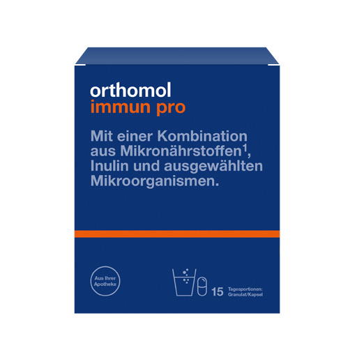 • Orthomol Immun pro enthält eine Kombination der Mikroorganismen Bifidobacterium lactis, Bifidobacterium infantis, Bifidobacterium longum, Lactobacillus plantarum, Lactobacillus rhamnosus.