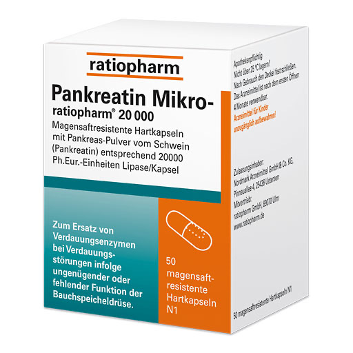 Pankreatin Mikro-ratiopharm 20 000 magensaftresistente Hartkapseln Wirkstoff: Pankreatin. Anwendungsgebiete: Störungen der exokrinen Bauchspeicheldrüsenfunktion, die mit einer Verdauungsschwäche einhergehen.
