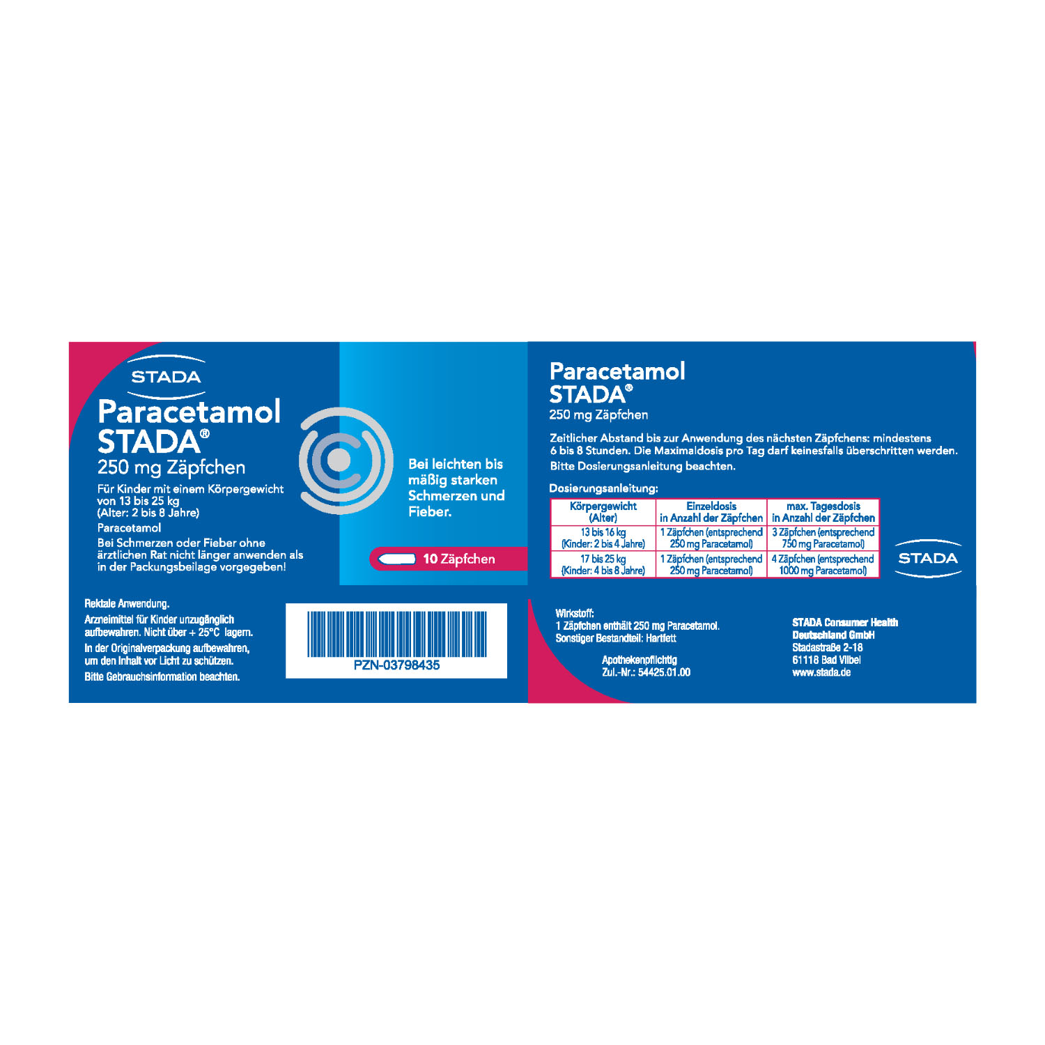 Die empfohlene Dosis von Paracetamol STADA® 250mg Zäpfchen ist abhängig von Körpergewicht und Alter.