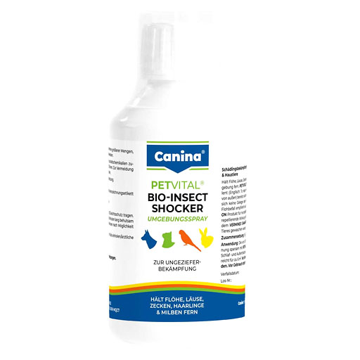 Je nach Befallstärke alle 2-4 Wochen die von Ungeziefer befallenen Stellen sparsam einsprühen. Bei sehr starkem Befall Petvital Bio-Insect Shocker drei Tage hintereinander sprühen und danach 1 Mal wöchentlich über 4 Wochen. Besonders Schlaf- und Aufenthaltsplätze z. B. Käfige des Haustieres einsprühen.