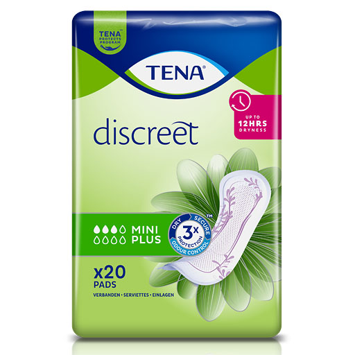TENA Discreet Mini Plus bietet diskreten und sicheren Schutz bei leichter bis mittlerer Blasenschwäche. Weiche Einlage für Frauen mit sensibler Blase, die bis zu 12 Stunden trocken hält. Feuchtigkeit wird effektiv eingeschlossen und sorgt für langanhaltende Trockenheit.