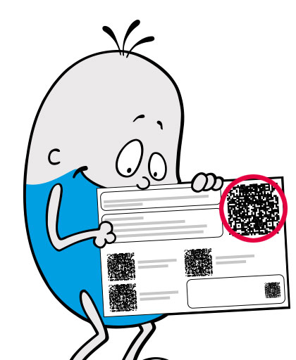 Du hast einen E-Rezept-Ausdruck auf Papier? Scanne den großen QR-Code oben rechts in der Ecke mit Pauls E-Rezept-Scanner, die restlichen QR-Codes braucht Paul nicht. Dein Rezept wird sofort in den Warenkorb gelegt.