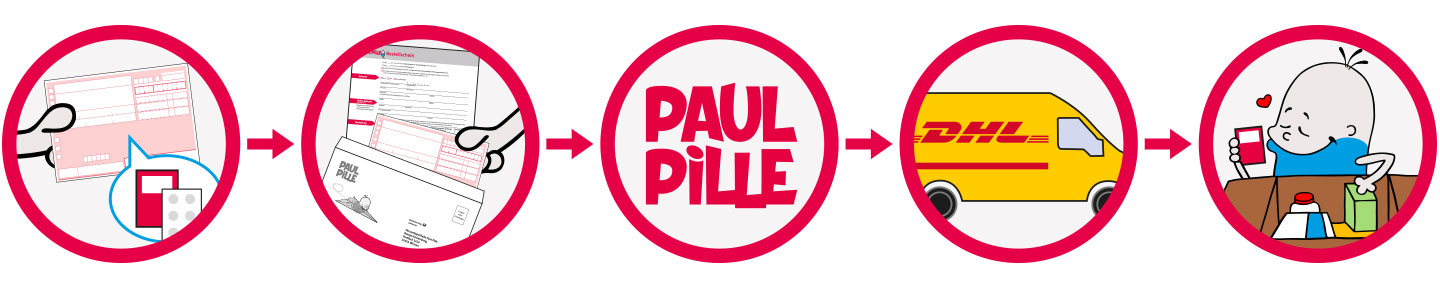 Dein Papier-Rezept steckst Du einfach in einen Freiumschlag und schickst es an Paul Pille. Du hast keinen Freiumschlag? Lade Dir den Paul Pille-Freiumschlag Vordruck herunter und klebe diesen auf Deinen Briefumschlag.